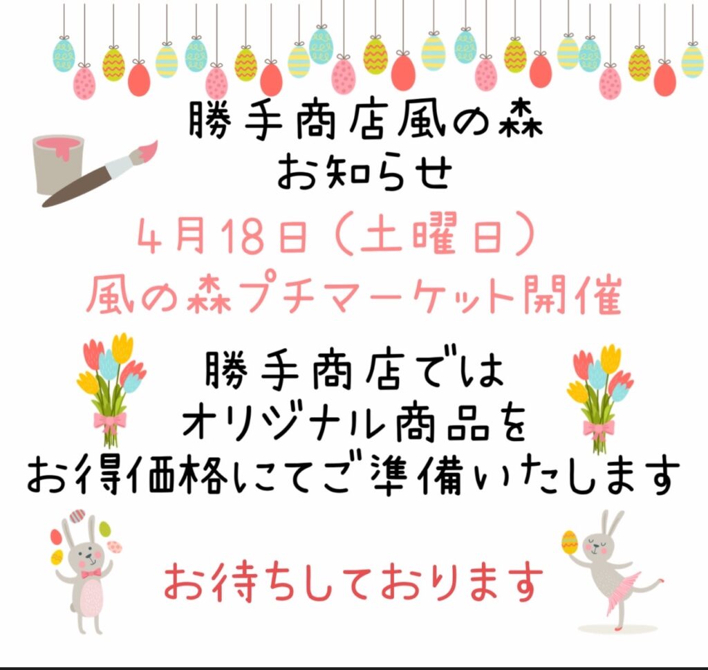 4月18日(土)風の森プチマーケット開催!!